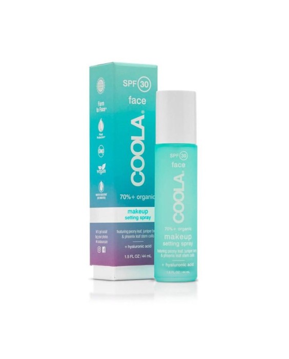 На старт, внимание, марш! Пара распылений Coola Face Makeup Setting Spray SPF 30 сохранит ваш макияж свежим в течение всего дня. Его лёгкое матовое покрытие предотвращает смазывание макияжа, увлажняет и защищает кожу от солнца.