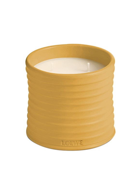 Vela perfumada con esencia de wasabi La vela de intensidad alta, evoca la fragancia verde y especiada del wasabi la planta Eutrema Japónica, ampliamente empleada como condimento en muchas elaboraciones por su distintivo sabor picante Su fragancia fresca y estimulante desvela notas a arroz basmati y citronela a lo largo del tiempo.Elaborada en cera natural con mecha de algodón, la vela se presenta en una vasija de terracota esmaltada en un vibrante tono amarillo con logo estampado en la base Fabricado en España.Todos los artículos de la colección LOEWE Home Scents son creaciones olfativas que resaltan los olores más reales y puros de la naturaleza. Debido a su naturaleza artesanal, no hay dos velas perfumadas exactamente iguales Detalles únicos que se suman a su belleza.