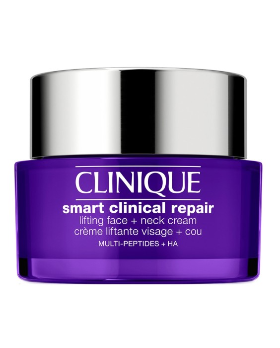 Una poderosa crema para rostro y cuello que reafirma visiblemente la piel y combate las líneas y arrugas para una piel más lisa, tersa y rejuvenecida. Aporta hidratación al instante durante 24h gracias al ácido hialurónico y al aceite de jojoba. Ingredientes clave:- Multi-péptidos: Refuerzan el colágeno natural para ayudar a fortalecer la piel para conseguir un efecto lifting y corregir visiblemente las líneas y arrugas.- Ácido hialurónico, aceite de jojoba y manteca de karité: La combinación de ingredientes nutritivos que ayuda a hidratar, restaurar la flexibilidad y alisar visiblemente las finas líneas de sequedad. Resultados probados: - El 100% muestra un rostro y cuello visiblemente más firme. - El 100% muestra un cuello visiblementer más liso.Información sobre la fórmula:- Segura para pieles sensibles.- No comedogénica.- Textura cremosa y untuosa.- Dermatológicamente testada.- Sin perfume.- Sometida a pruebas de alergia.- Sin SLS, sin SLES, sin alcohol secante. Utilizar mañana y noche en rostro y cuello. Aplicar después de usar Clinique Smart Clinical Repair™ Sérum Corrector de Arrugas.Continúa con Clinique Smart Clinical Repair™ Wrinkle Correcting Eye Cream para una rutina antiedad definitiva.Todo tipo de pieles, incluidas las sensibles.