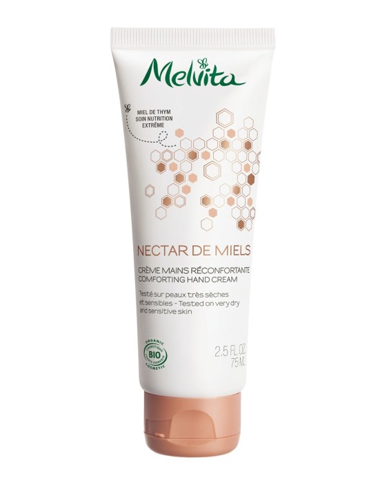 Crema de manos con miel, certificado bio, es un concentrado de nutrición para las manos secas y dañadas. La piel se encuentra más suave y flexible.La crema de manos con miel, certificado bio, es un concentrado de nutrición para las manos secas y dañadas. Es la textura más rica de las cremas de manos de Melvita.Contiene miel de tomillo que repara y calma la piel.