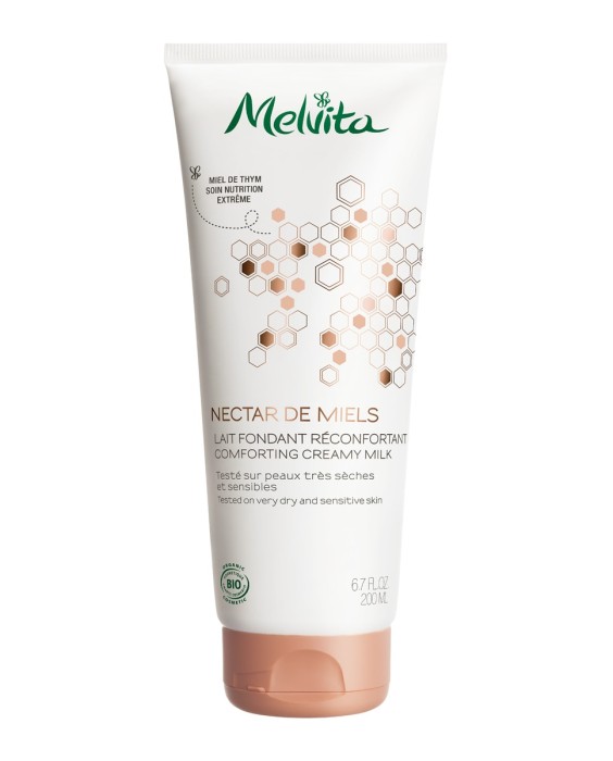 Leche corporal con miel bio, es el cuidado hidratante y nutritivo ideal. Un indispensable para las pieles secas y sensibles.La leche de cuerpo con miel certificado bio es un cuidado hidratante y nutritivo con notas florales y gourmandes, ideal para las pieles secas y sensibles.Enriquecido con miel de tomillo bio, reconocido por sus propiedades nutritivas y reparadoras fuera de lo común,esta leche es un concentrado de comfort que envuelve el cuerpo. Su textura rica y fluida es ideal para las pieles más frágiles.91% de los consumidores encuentran su piel inmediatamente nutrida y reconfortada** test sobre 33 voluntarios con la piel seca a muy seca. 30% de estos con la piel del cuerpo muy sensible