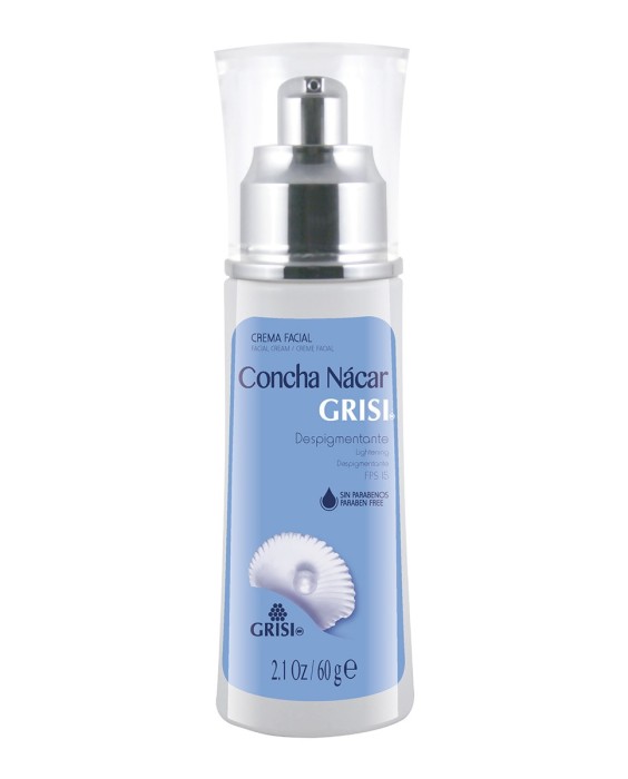 Crema despigmentante y regeneradora con Nácar de Concha, vitamina C y FPS15.Elimina manchas, pequeñas cicatrices y líneas de la piel.Respeta el equilibrio natural de la piel y mantiene la piel hidratada.Exfoliante y Antioxidante.