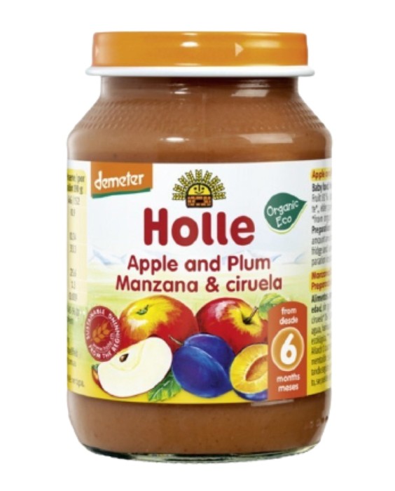 Toda la información que necesitas saber sobre el tarrito de Manzana y Ciruela Ecológico, HolleEl tarrito de manzana y ciruela ecológico de Holle forma parte de una dieta saludable y equilibrada. Son la forma adecuada de adaptar al bebé a que poco a poco ingiera comidas mas densas.Es el modo apropiado de continuar la alimentación complementaria para tu bebé, a partir de 6 meses.¿Cuáles son sus ventajas?Rápido y fácil de preparar.Sin gluten y sin azúcar añadido (solo con el azúcar propio de la fruta).Un gusto suave y cremoso.De fácil digestión.Potente antioxidante.Contiene vitaminas E,C, B1,B2 y B12 (gracias a la mezcla de estas frutas)Puede ser un delicioso postre o una dulce merienda.